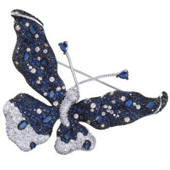Брошь Бабочка (фианит синий; покрытие родий), Есть комплект