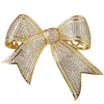 Изготовлено из ювелирного сплава на основе латуни с гальваническим покрытием золотом. Изделие украшает белый фианит. Размер 5х4.5см.
