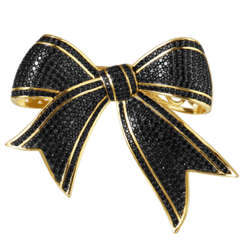 Изготовлено из ювелирного сплава на основе латуни с гальваническим покрытием золотом. Изделие украшает фианит черного цвета. Размер 5х4.5см.