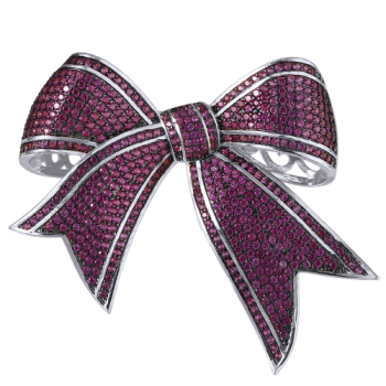 Брошь Бант (фианит фуксия; покрытие родий), Есть комплект