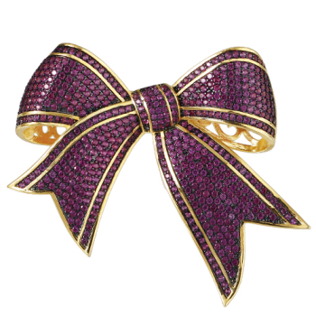 Изготовлено из ювелирного сплава на основе латуни с гальваническим покрытием золотом. Изделие украшают фианит белого и фуксия цвета. Размер 4.5х5см.