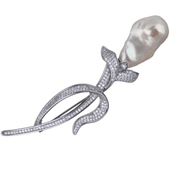 Изготовлено из ювелирного сплава на основе латуни с гальваническим покрытием родием. Изделие украшают жемчуг и белые фианиты. Размер 9см.*Цвет и форма жемчужин может отличаться от изображенной на фото.