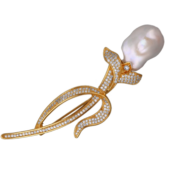 Брошь Барокко (жемчуг белый 16мм, белый фианит; покрытие золото), Есть комплект