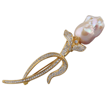 Изготовлено из ювелирного сплава на основе латуни с гальваническим покрытием золотом. Изделие украшают лососевый жемчуг и белые фианиты. Размер 9см.*Цвет и форма жемчужин может отличаться от изображенной на фото.
