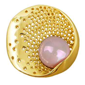 Изготовлено из ювелирного сплава на основе латуни с гальваническим покрытием золотом. Изделие украшает майорский круглый жемчуг холодно-розового цвета диаметром 16мм. Размер украшения 4х4см. Замок-английская булавка.