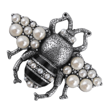 Изготовлено из ювелирного сплава на основе латуни с гальваническим покрытием античным серебром. Изделие украшают жемчуг Майорка белого цвета и черная эмаль. Замок с задвижной гильзой. Размер броши 5.5х4см.