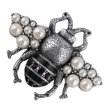 Изготовлено из ювелирного сплава на основе латуни с гальваническим покрытием античным серебром. Изделие украшают жемчуг Майорка белого цвета, эмаль и кристаллы черного цвета. Замок с задвижной гильзой. Размер броши 5.5х4см.