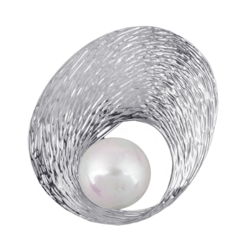Изготовлено из ювелирного сплава на основе латуни с гальваническим покрытием родием. Изделие украшает белый жемчуг Майорка диаметром 14мм. Замок-английская булавка. Размер броши 3.5х4.5см.00450236