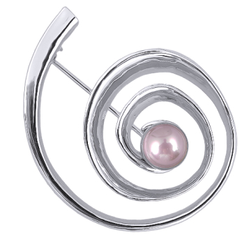 Изготовлено из ювелирного сплава на основе латуни с гальваническим покрытием родием. Изделие украшает жемчуг Майорка светло-сиреневого цвета диаметром 10мм. Размер 3.5х5см. Замок-английская булавка.
