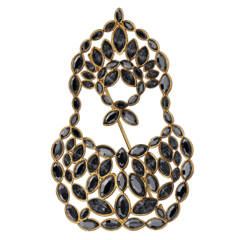Изготовлено из ювелирного сплава на основе латуни с гальваническим покрытием золотом. Изделие украшают кристаллы SW темно-серого и гематит цвета. Размер броши 7.5х4.5см. Замок-булавка.