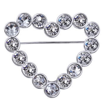 Изготовлено из ювелирного сплава на основе латуни с гальваническим покрытием родием. Изделие украшают кристаллы SW белого цвета диаметром 6мм. Размер броши 7х4.5см. Замок-булавка.