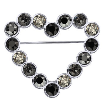 Изготовлено из ювелирного сплава на основе латуни с гальваническим покрытием родием. Изделие украшают кристаллы SW черного, серого, темно-серого и гематит цвета диаметром 6мм. Размер броши 7х4.5см. Замок-булавка.