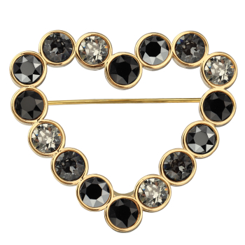 Изготовлено из ювелирного сплава на основе латуни с гальваническим покрытием золотом. Изделие украшают кристаллы SW черного, серого, темно-серого и гематит цвета диаметром 6мм. Размер броши 7х4.5см. Замок-булавка.
