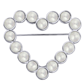 Брошь Сердце (Майорка 6мм белая; покрытие родий), Есть комплект