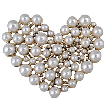 Изготовлено из ювелирного сплава на основе латуни с гальваническим покрытием античным золотом. Изделие украшает жемчуг Майорка белого цвета диаметром 2-8мм. Размер 6.5х5.5см. Замок-английская булавка.
