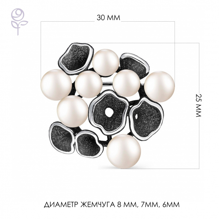 Металл: Серебро Вставка: жемчуг культивированный Размер жемчуга: 8-8,5 мм Форма огранки жемчуга: Кабoшон Покрытие: Родий Дополнительные вставки: Без вставок