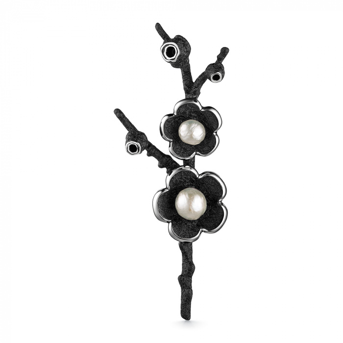 Металл: Серебро Вставка: жемчуг культивированный Размер жемчуга: 5-5,5 мм Форма огранки жемчуга: Кабoшон Цвет эмали: Черная Дополнительные вставки: Без вставок