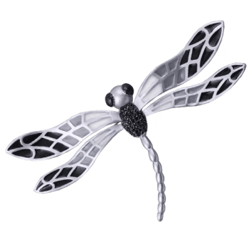 Изготовлено из ювелирного сплава на основе латуни с покрытием матовым родием. Изделие расписано ювелирной краской черного и серого цвета, покрыто эмалью и украшено агатом и фианитами. Размер 10х6см.