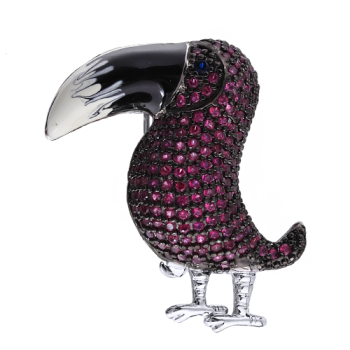 Брошь Тукан (фианит фуксия; покрытие родий), Есть комплект
