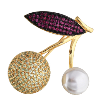 Изготовлено из ювелирного сплава на основе латуни с гальваническим покрытием золотом. Изделие украшают жемчуг Майорка белого цвета и фианиты цвета фуксия. Размер 4, 5х4, 5см.