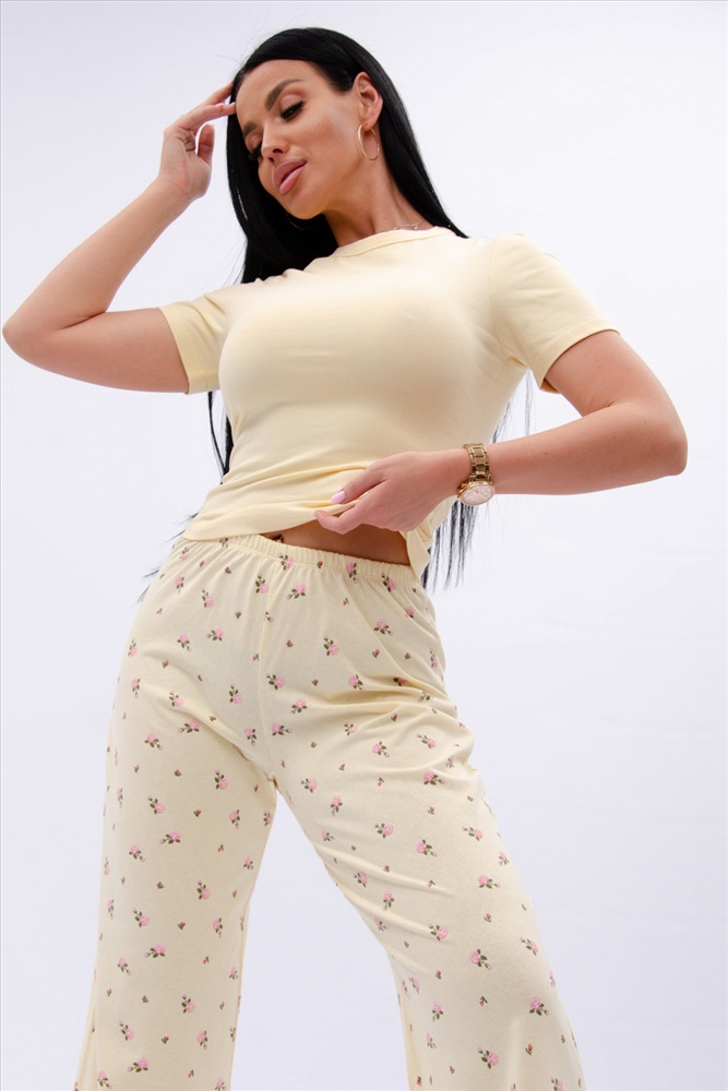 Стиль: домашний Пижама женская со штанами изготовлена из мягкой ткани, которая обладает дышащими и влаговпитывающими свойствами, идеально подходит для сна, обеспечивает максимальную практичность и воздухопроницаемость, облегчая сон даже в самые жаркие и холодные ночи. Футболка состоит из кулирки с лайкрой (95% хлопок, 5% эластан), брюки состоят из кулирки (100% хлопок) Женский домашний костюм состоит из стильной тонкой ночной футболки с коротким рукавом и легких брюк, которые создают комфортный домашний уют дома. Пижама женская яркая и в тоже время нежная, идеальна для беременных, будущих мам или в роддом, ведь в этой пижаме для беременных удобно весь день. Носить можно в любое время года: осенью или даже зимой под согревающим одеялом.