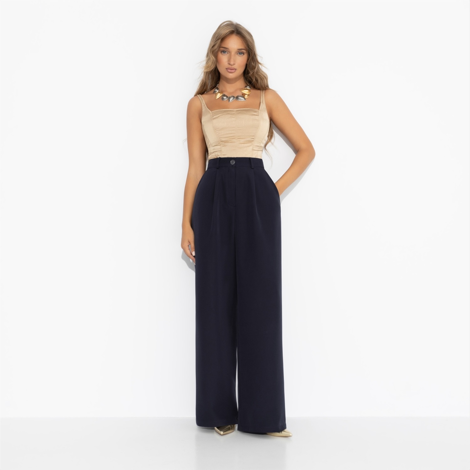 Состав: «Барби» (95% п/э, 5% эластан) Плотность ткани: Средняя Тип ткани: Текстиль Вид застежки: Пуговица/-ы, молния Декоративные элементы: Другое Карманы: В боковом шве Основной цвет ткани: Синий Отрезная талия: Есть Подклад: Нет Резинка по талии: Нет Рисунок/раппорт: Нет, все изделия идентичны Сезон: Круглогодичный Силуэт: Прямой Стиль: Классический Параметры модели на фото: