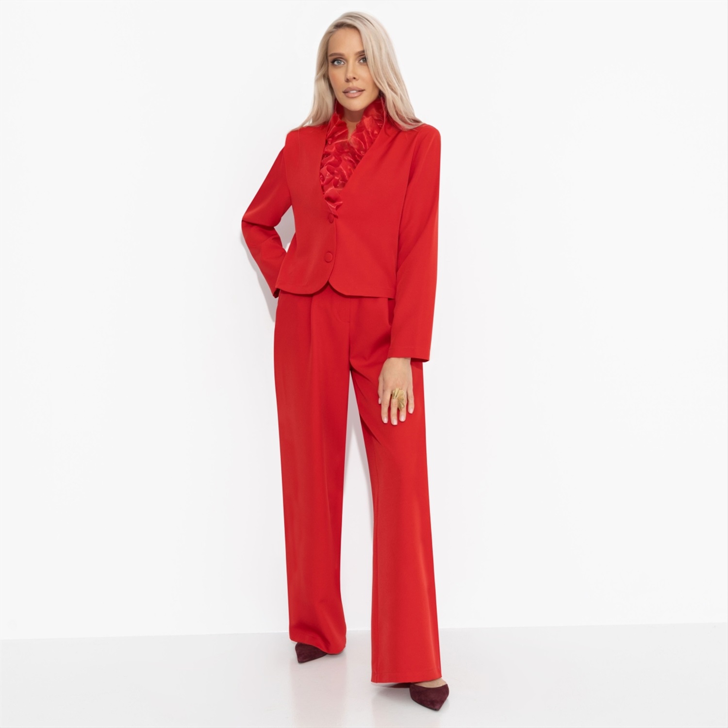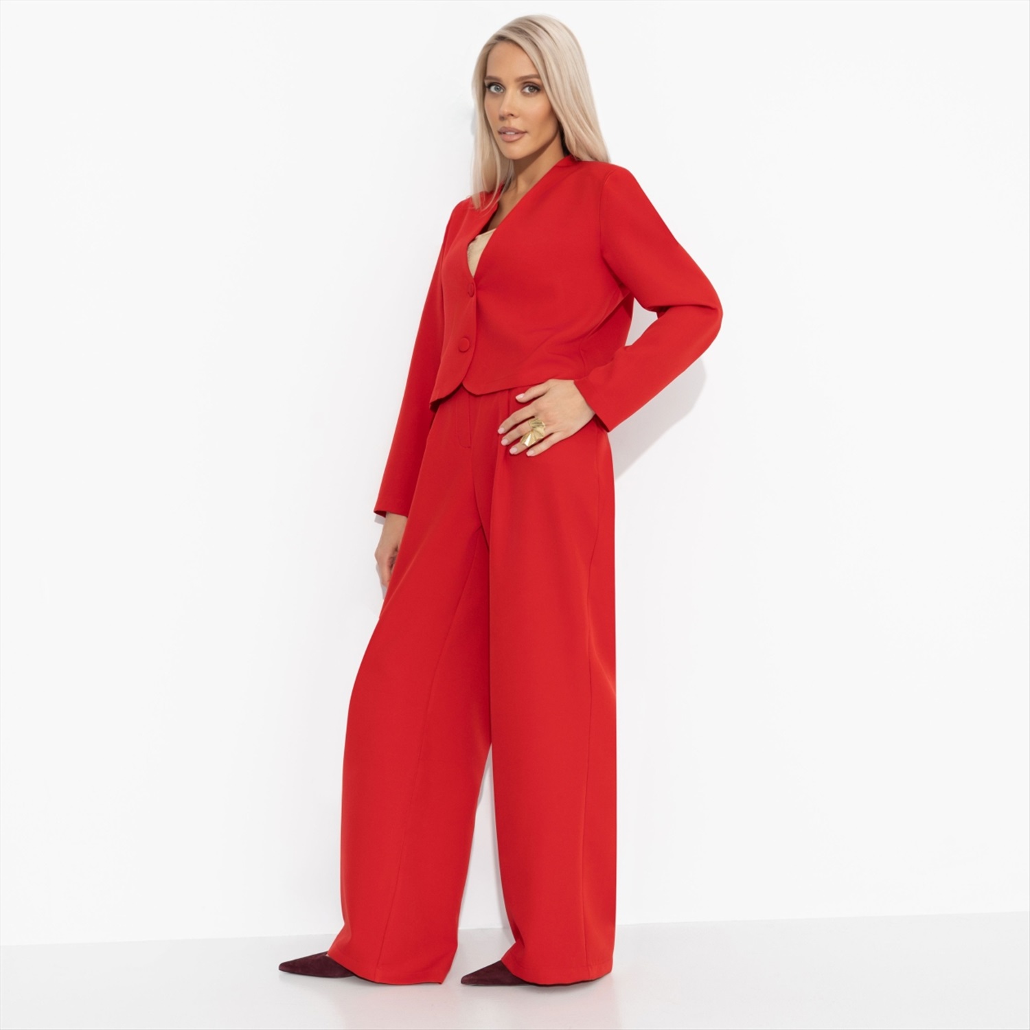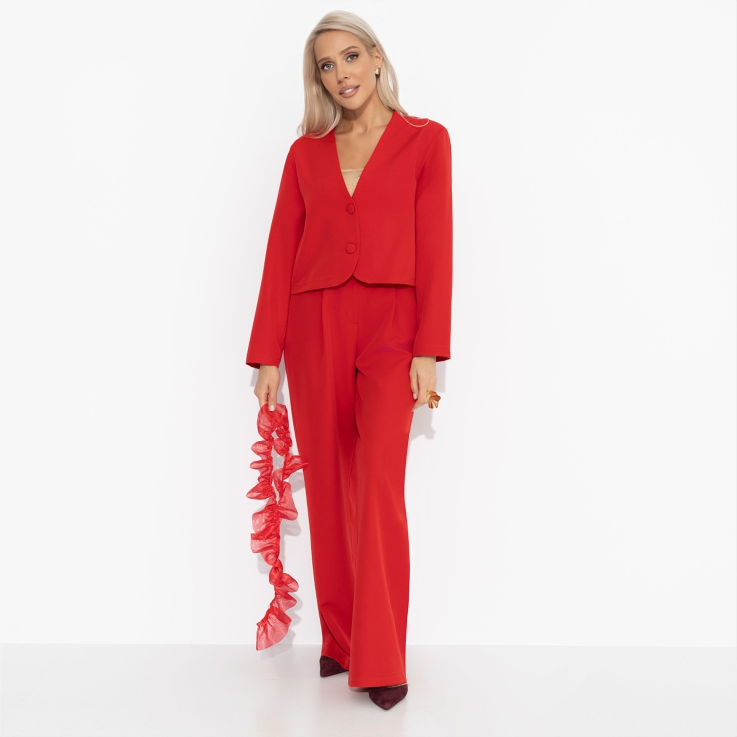 Состав: «Барби» (95% полиэстер, 5% эластан) Плотность ткани: Средняя Тип ткани: Текстиль Вид застежки: Пуговица/-ы Декоративные элементы: Другое Карманы: В боковом шве Основной цвет ткани: Красный Отрезная талия: Есть Подклад: Нет Резинка по талии: Нет Рисунок/раппорт: Нет, все изделия идентичны Сезон: Круглогодичный Силуэт: Прямой Стиль: Классический Параметры модели на фото: