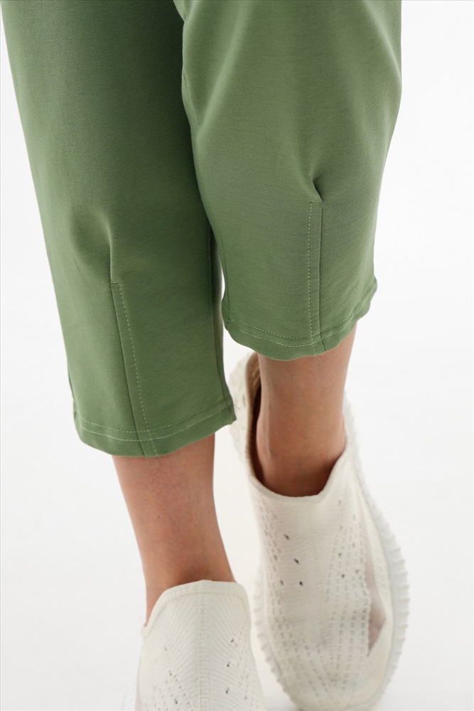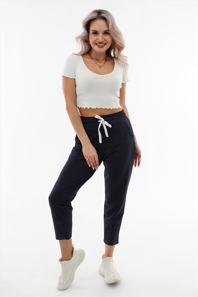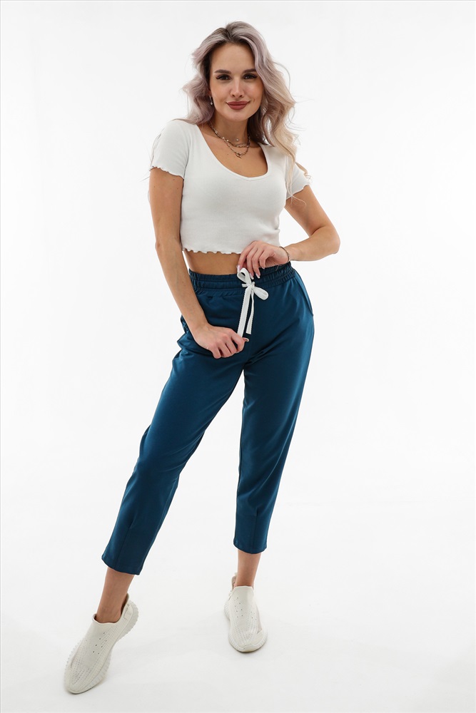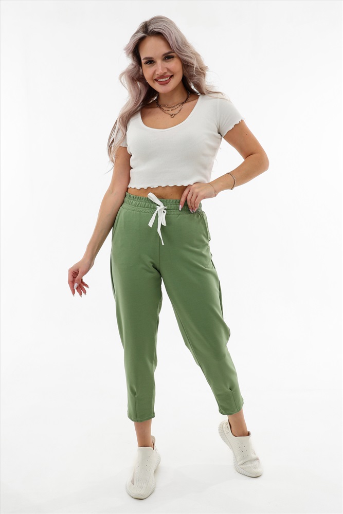 Застежка: без застежки Moses. Брюки-трико (2-х нитка) женские 3/4 трикотажные. В данной модели имеется два функциональных кармана, пояс на резинке с регулируемым шнурком. Отлично подходят для повседневной носки, спорта и отдыха.