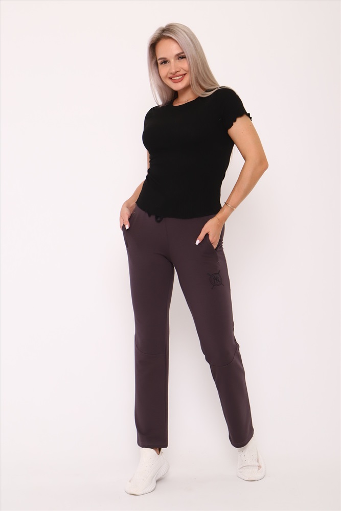 Застежка: без застежки Женские брюки выполнены из футера 2-х нитка, по бокам карманы на молнии, эластичный пояс. Отлично подходят для занятий спортом, повседневной деятельности, ежедневных прогулок и активного отдыха. Длина брюк по боковому шву с учетом пояса.