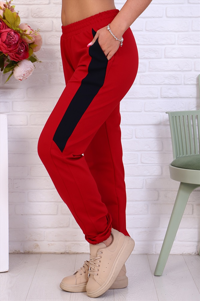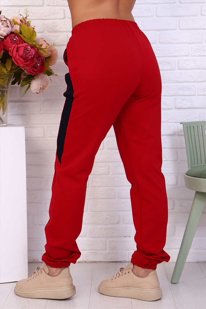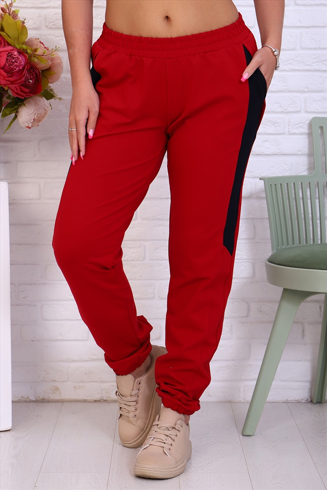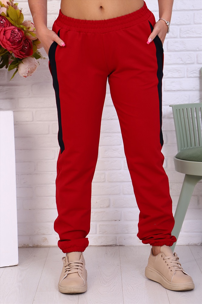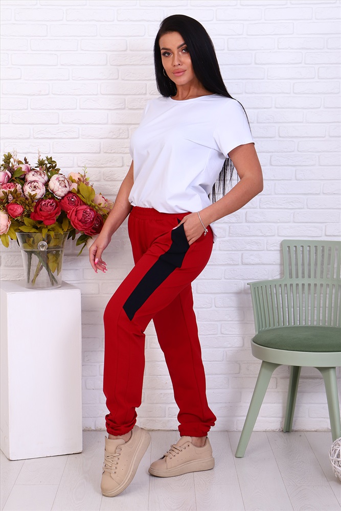 Застежка: без застежки Брюки женские из футера 2-х нитка. Модель полуприлегающего силуэта на эластичном поясе с боковыми карманами. Вдоль бокового шва расположен лампас из отделочного полотна с фигурной вставкой, низ брюк обработан резинкой. Модель идеально подойдет для женщин, девушек как для дома, так и для прогулок.