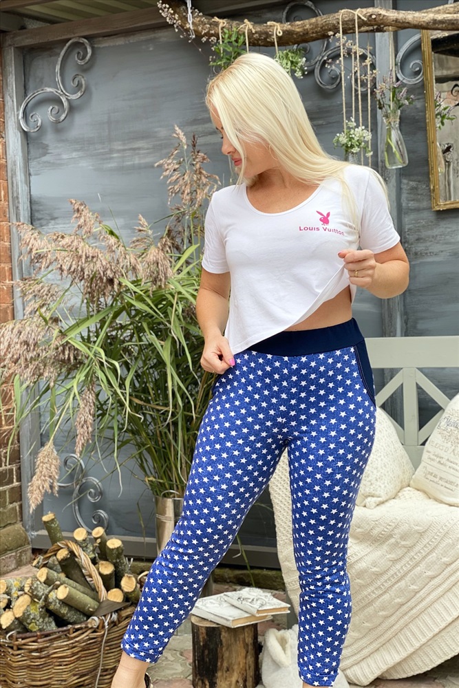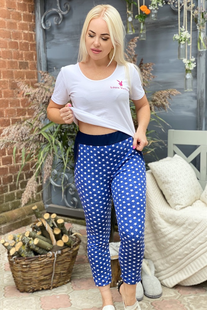 Состав: хлопок-72%, полиэстер-20%, эластан-8% Модель: Брюки 1190 Тип товара: брюки Материал: футер с лайкрой 2-х нитка | футер с лайкрой 2-х нитка Бренд: Натали Суслова Длина: укороченный Карман: боковые | накладные Особенности: на резинке Отделка: с карманами Посадка: высокая посадка Рейтинг: Рейтинг 4 и выше Рисунок: полоска | разное Сезонность: лето | осень | весна Силуэт: прилегающий Скидка: любая | от 10% и больше | от 30% и больше Стиль: молодежный | повседневный Застежка: без застежки Облегающие брюки из футера с лайкрой. Несколько вариантов расцветки. Сзади имеются карманы, общая длина до щиколоток. В расцветке звезды возможен более мелкий узор звездочек. Таблица размеров и веса