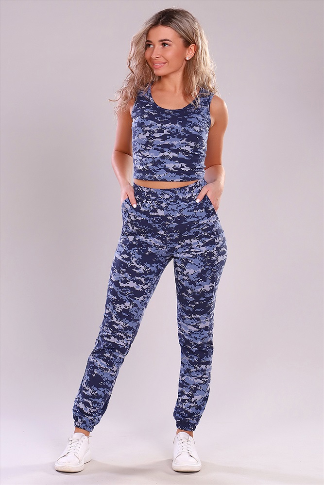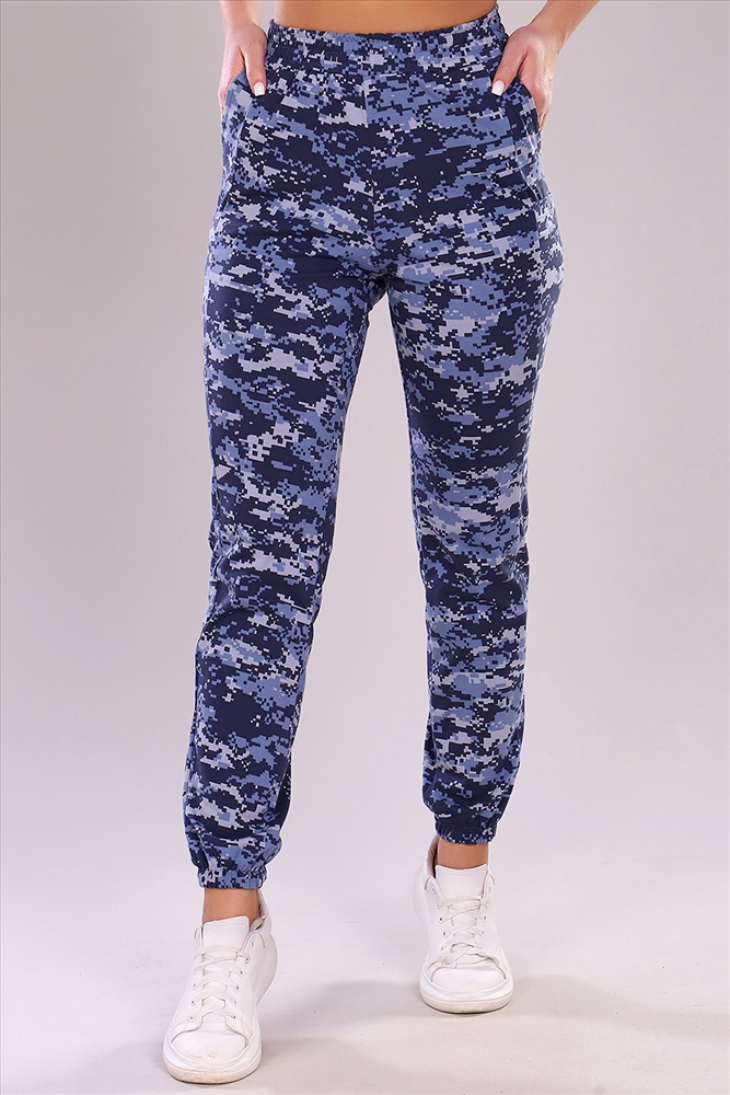 Застежка: без застежки Брюки женские с карманами. Данная модель выполнена из эластичного трикотажного полотна кулирка с лайкрой. Верхняя часть изделия с поясом под резинку шириной 5 см, отстроченной поясной машинкой в три строчки. Низ под резинку 2,5 см. По бокам присутствуют по два кармана. Отличная модель для прогулок и повседневной носки.