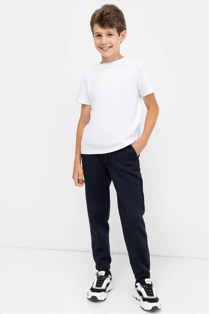 Специально для мальчиков! Утепленные брюки-джоггеры из трикотажного футера с нежным подчесом. Свободный силуэт гарантирует особый комфорт. Пояс с эластичной тесьмой и шнуром-завязкой, есть карманы хулиганы. Штанины завершаются манжетами из рибаны. Идеально для спорта, жизни и отдыха!