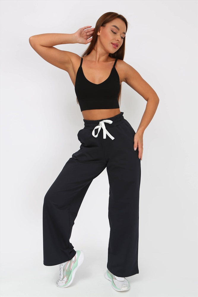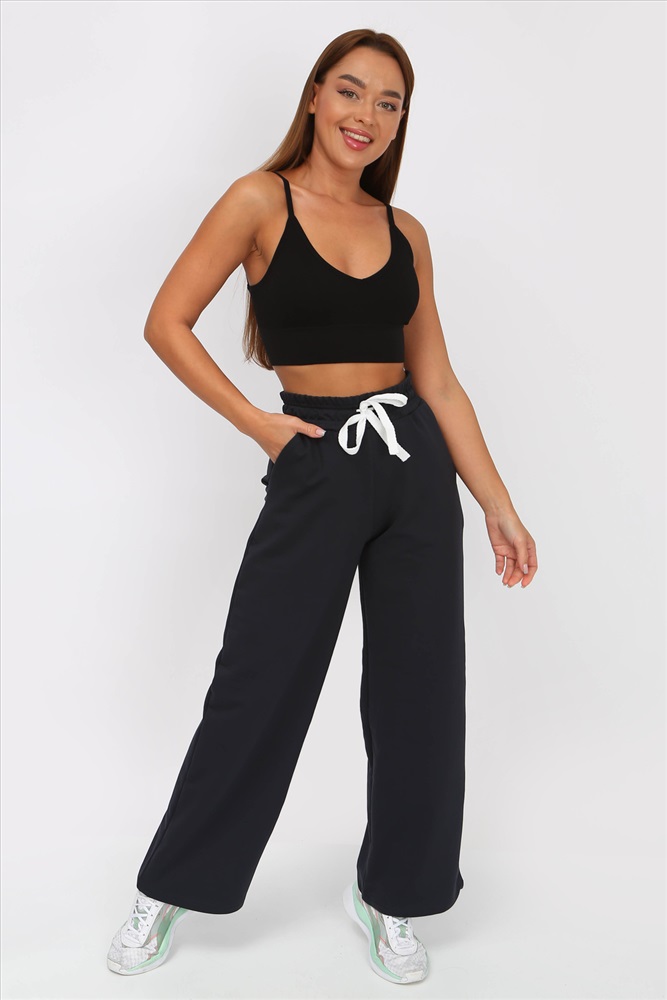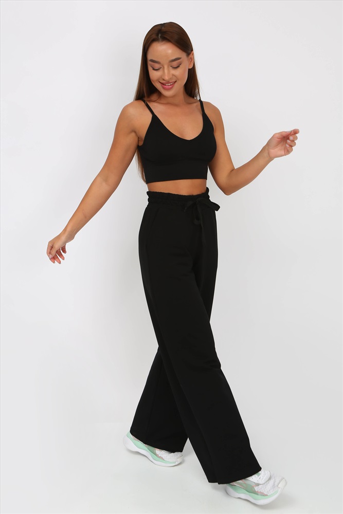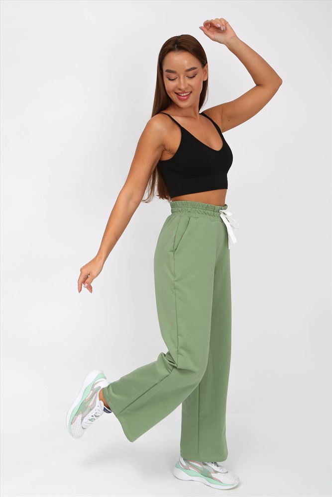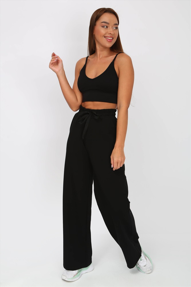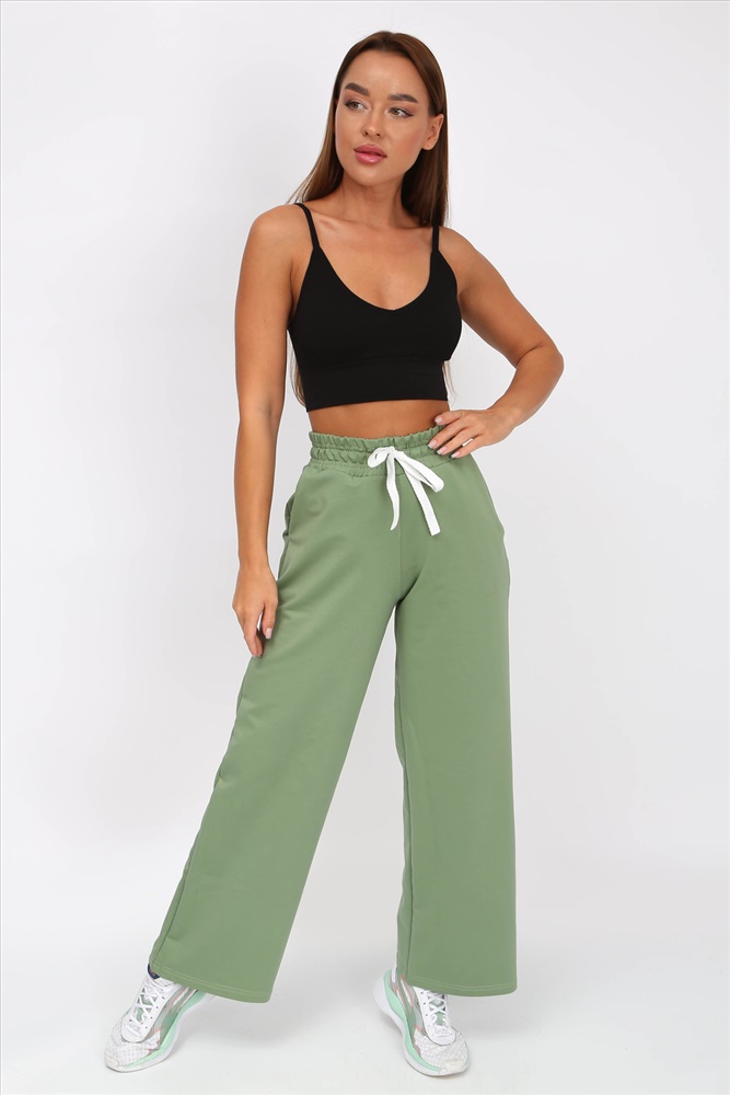 Застежка: без застежки Разнообразь свой гардероб модными брюками-палаццо с поясом на резинке со шнурком. Брюки свободные, с завышенной талией, по бокам карманы с отрезным бочком. Подойдут для повседневной носки, для танцев и прогулок. Ткань 2-х нитка компакт пенье. Рост модели на фото 160 см, размер 44
