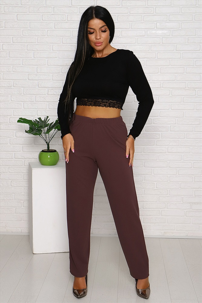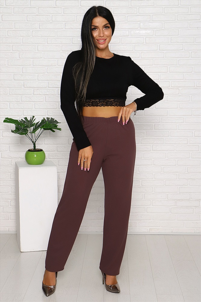 Застежка: без застежки Модель прямого свободного силуэта , пояс на резинке, из плотной трикотажной стрейчевой ткани креп. Ткань приятна к телу, не мнётся, крой брюк очень удобен в носке, в них вы будете чувствовать себя комфортно и стильно.