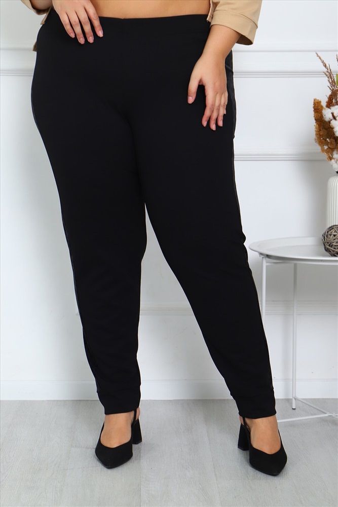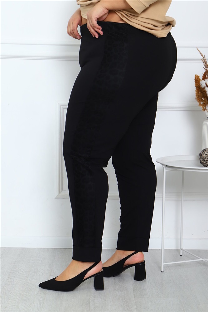 Модель полуприлегающего силуэта со вставками по бокам, низ на широком манжете, основная ткань-креп, вставка из эко-кожи. Брюки изготовлены из трикотажной ткани , которая хорошо тянется, удобна в носке, выдерживает многократные стирки. Замечательно сочетаются с любым верхом и обувью, подойдут и к классическому стилю, и к спортивному.