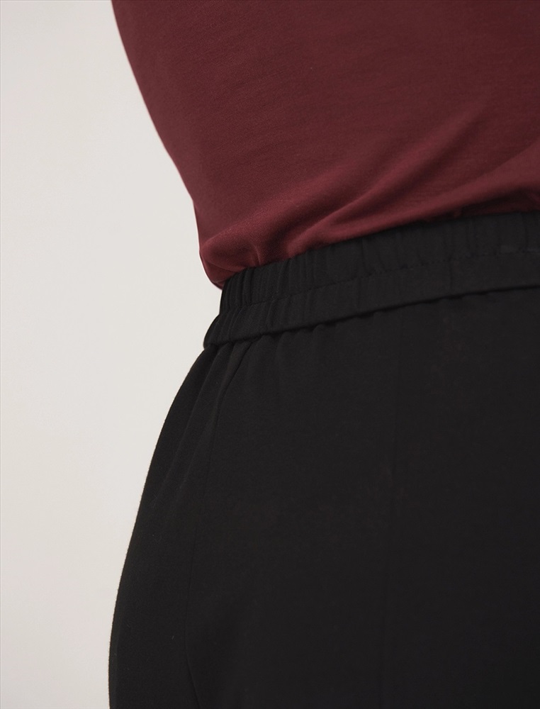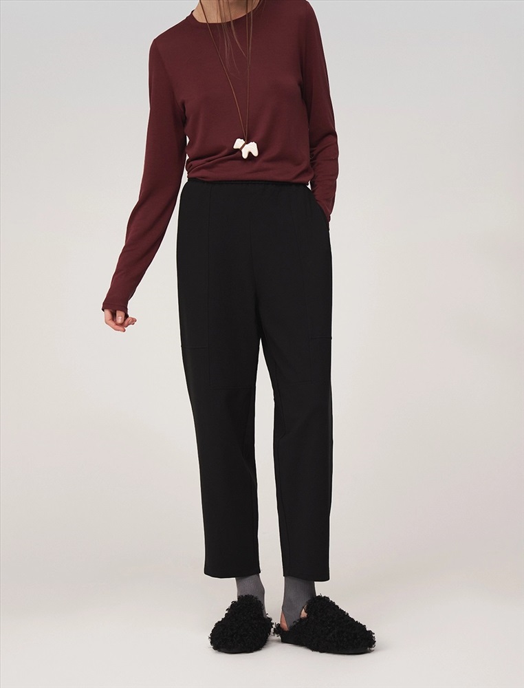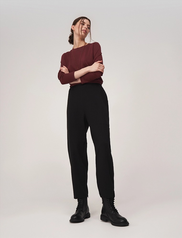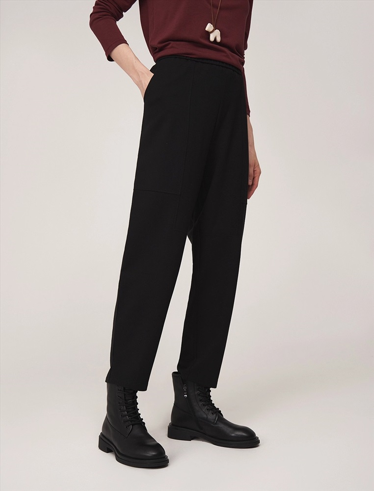 Брюки зауженного к низу силуэта. По поясу эластичная резинка для комфортной посадки. По передней части декоративные накладные карманы, которые уходят и на заднюю часть изделия. По бокам врезные карманы. Выполнены из хлопка (95%) и спандекса, что обеспечивает мягкость и долговечность.