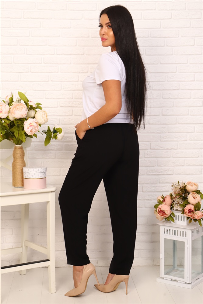 Состав: 100% вискоза Модель: Брюки 32801 Тип товара: брюки Материал: штапель | штапель Бренд: Натали Суслова Карман: боковые Назначение: для офиса Особенности: на резинке Отделка: с карманами Посадка: высокая посадка Рейтинг: Рейтинг 4 и выше Рисунок: однотонные Сезонность: лето | осень | весна Силуэт: прямой | свободный Стиль: офисный | повседневный Застежка: без застежки Классические черные брюки на все случаи жизни. Брюки свободного покроя, зауженные к низу. Пояс на эластичной тесьме, по бокам внутренние карманы. Для любителей черного цвета незаменимы в любую погоду, благодаря легкой натуральной ткани штапель. Длина брюк увеличена на возможную усадку ткани после стирки. Стирать изделие при 30 градусах. Измененная длина брюк: 48-101, 50-101, 52-102, 54-102, 56-102,58-102 Таблица размеров и веса