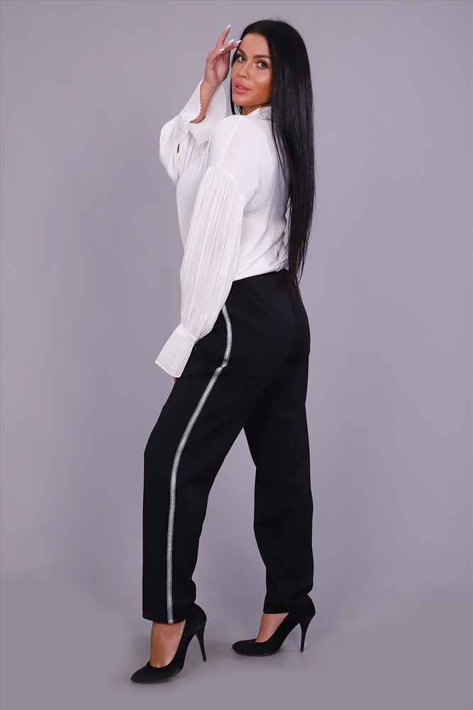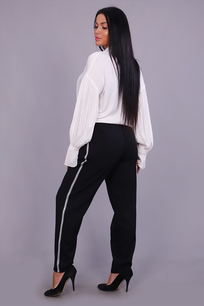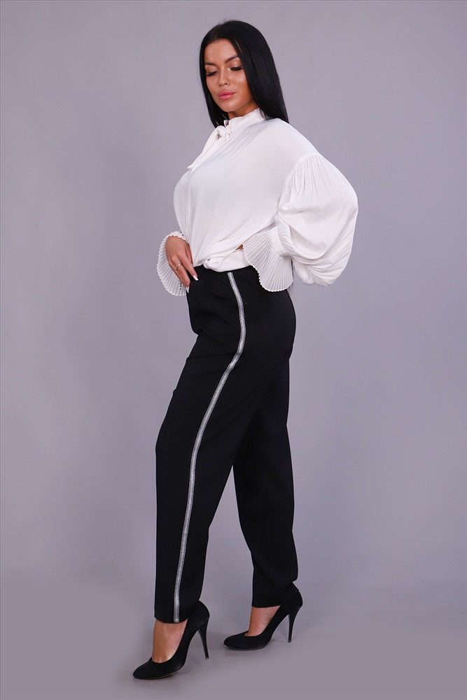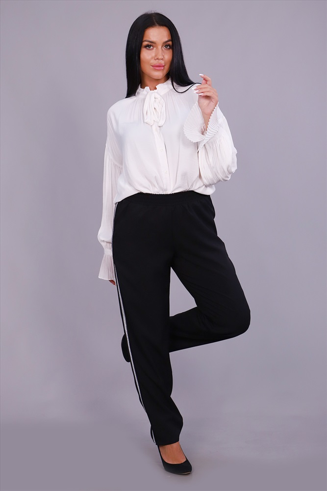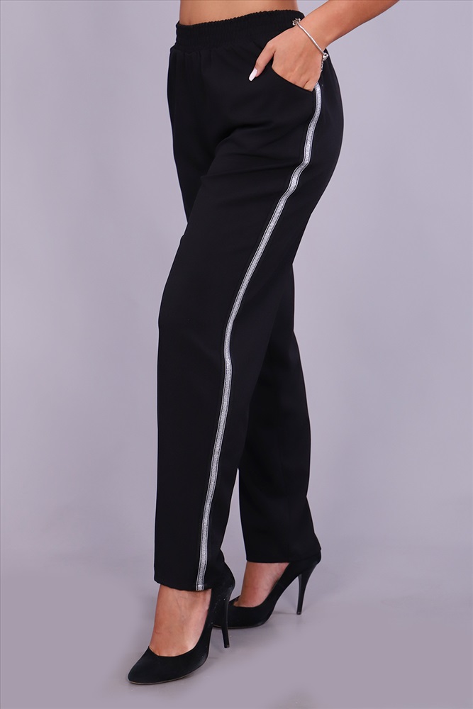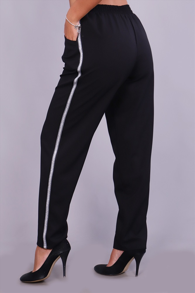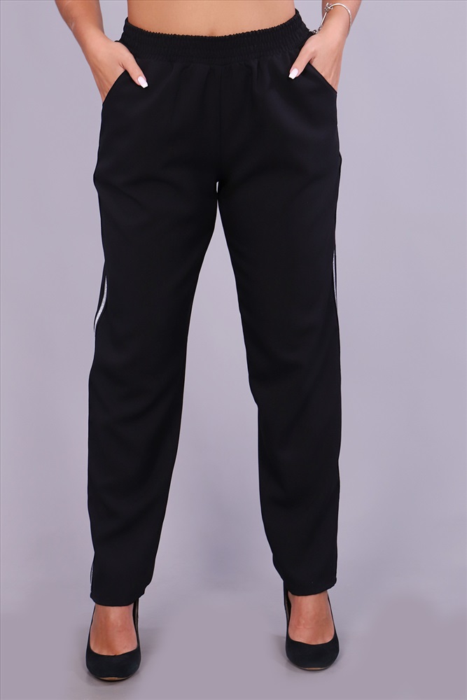 Состав: 20% лен, 80% ПЭ Модель: Брюки 32806 Тип товара: брюки Материал: смесовая ткань | смесовая ткань Бренд: Натали Суслова Карман: боковые Назначение: для офиса Особенности: на резинке Отделка: с лампасами Посадка: высокая посадка Рейтинг: Рейтинг 4 и выше Рисунок: однотонные Сезонность: лето | осень | весна | зима Силуэт: прямой Стиль: офисный | повседневный Застежка: без застежки Удобные практичные классические черные брюки. Подойдут и для работы, и для торжественных случаев. Нарядность им придает лампас с серебряной люрексовой полосой. Ткань с содержанием льна не электризуется, приятна и комфортна к телу. Удобный пояс на широкой резинке, по бокам внутренние карманы. Будут хорошо смотреться с туфлями на каблуках и со спортивной обувью. Таблица размеров и веса
