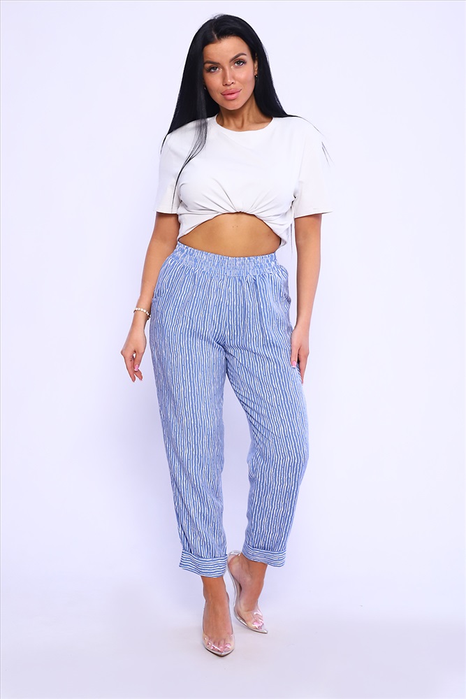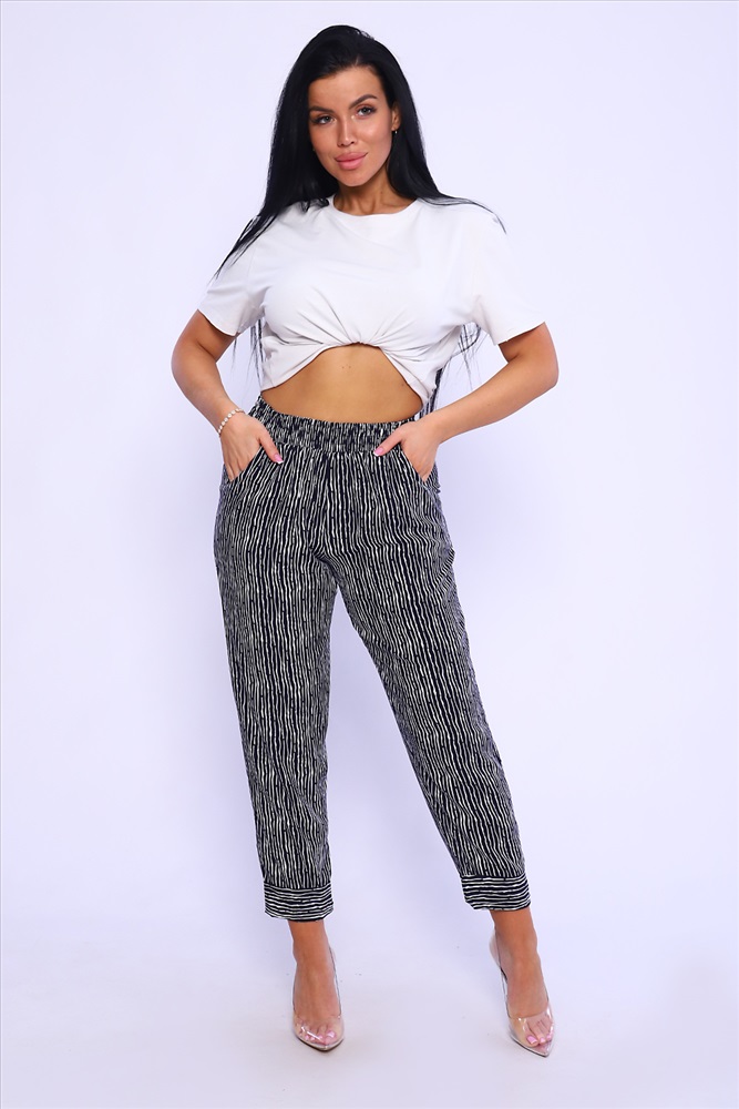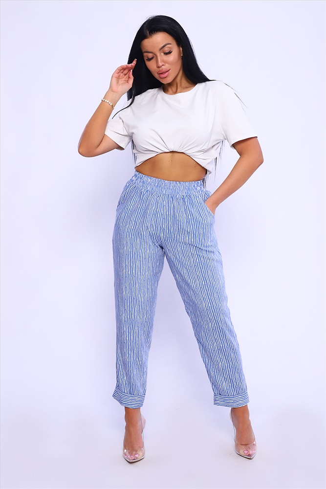 Застежка: без застежки Незаменимая вещь на лето - легкие брюки из штапеля. Свободный крой, пояс на резине обеспечивают комфорт и свободу движения. Вискозная ткань штапель обладает отличной воздухопроницаемостью, гигроскопичностью, ткань очень приятна к телу. Брюки длиной 7/8 , внизу манжет, подвернутый наверх, отогнув его, можно увеличить длину брюк. По бокам внутренние карманы. В замерах обхват талии соответствует длине резинки в растянутом виде. Рост модели на фото - 167см.