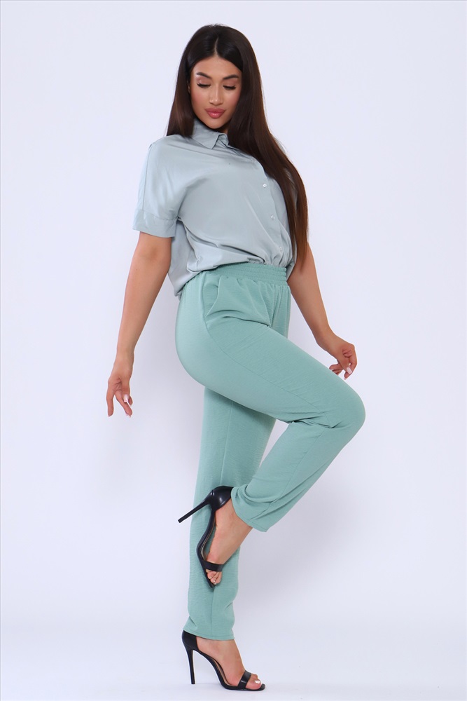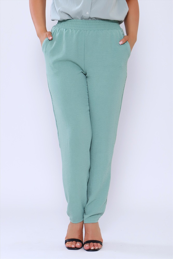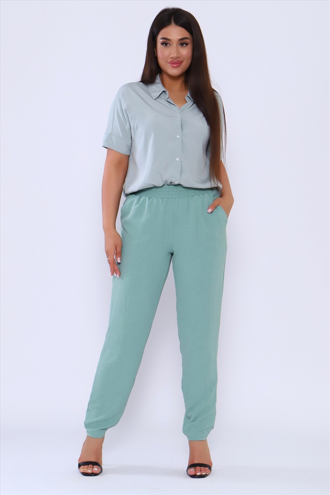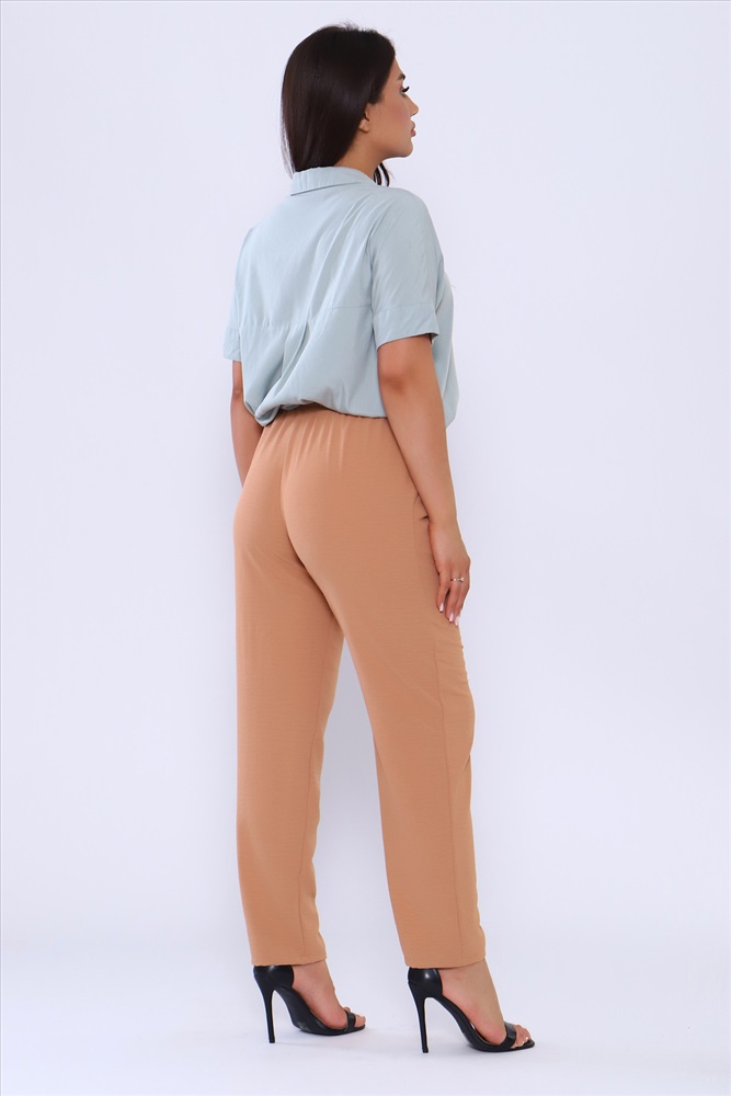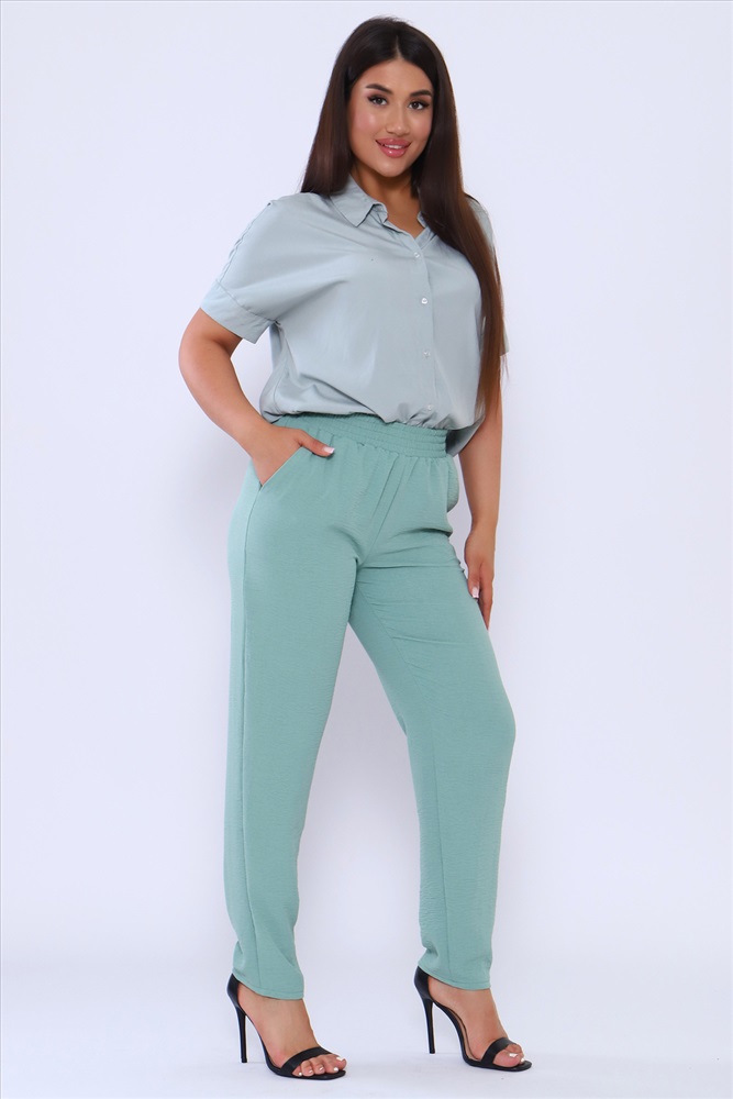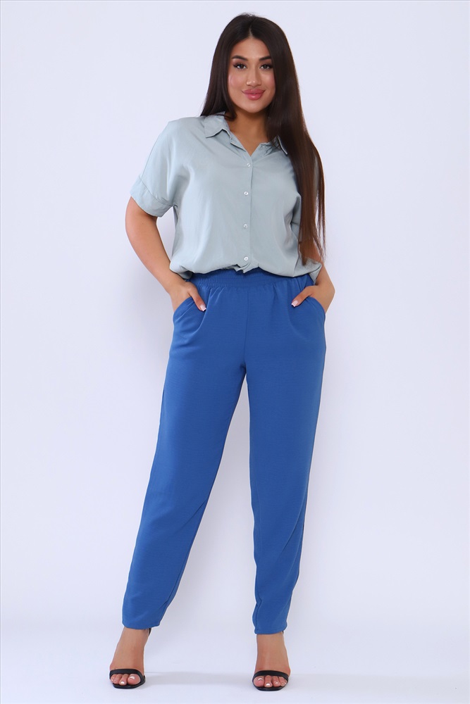 Застежка: без застежки Очень комфортные летние брюки, которые можно носить и дома, и на работе, и на отдыхе. Они удобны тем, что изготовлены из легкой немнущейся ткани с эффектом жатки. Брюки свободного кроя , зауженные к низу, удобный пояс на резинке, по бокам внутренние карманы. Легко стираются, быстро сохнут, не требуют глажки. Длина брюк рассчитана на рост 170-176. ОТ замеры представлены в растянутом виде.