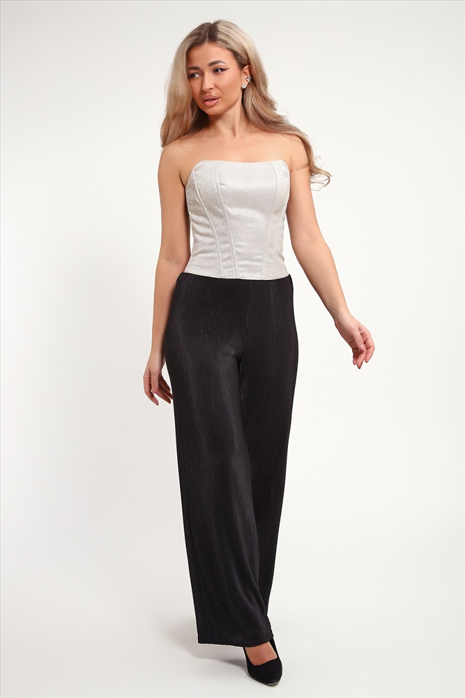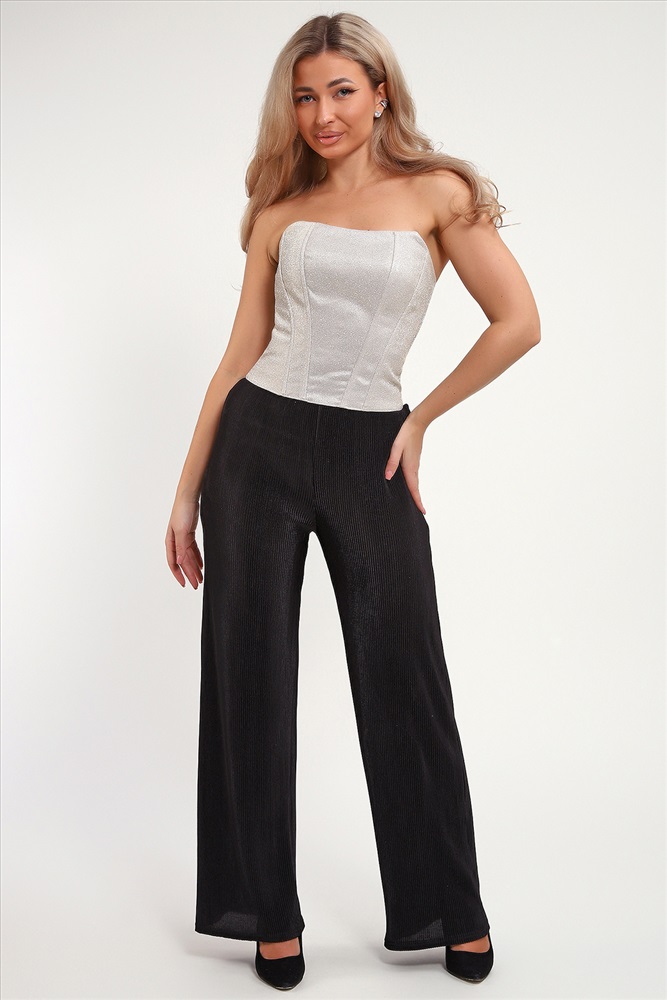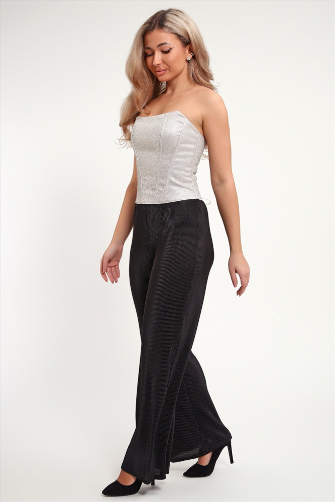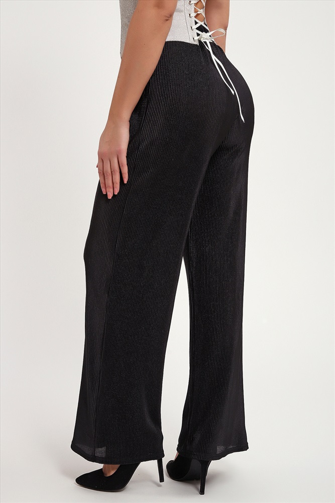 Застежка: без застежки Модные широкие брюки палаццо стали классикой в современном мире моды. Свободный прямой крой брюк скрывает недостатки фигуры, обеспечивает комфорт и удобство при носке, подходит модницам любого роста. Изюминкой этих брюк является ткань - атлас гофре. Ткань имеет гофрированную структуру, приятна к телу, совершенно не мнется, хорошо тянется, но не деформируется. Легкая струящаяся ткань хорошо драпируется и имеет приятный блеск. Завышенная посадка по талии, удобный пояс на резинке. Брюки незаменимы в качестве повседневной одежды на работе и в офисе, а также для прогулки летом и как домашняя одежда. А если вы подберете к ним нарядную блузку, то будете отлично выглядеть на празднике или вечеринке. В замерах обхват талии соответствует длине резинки в растянутом виде.