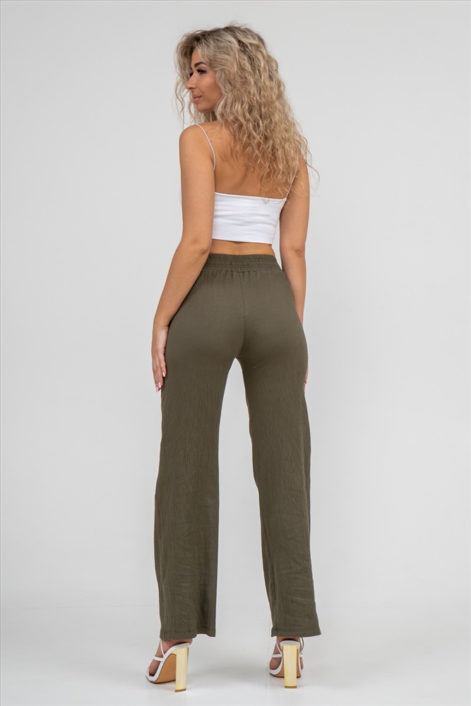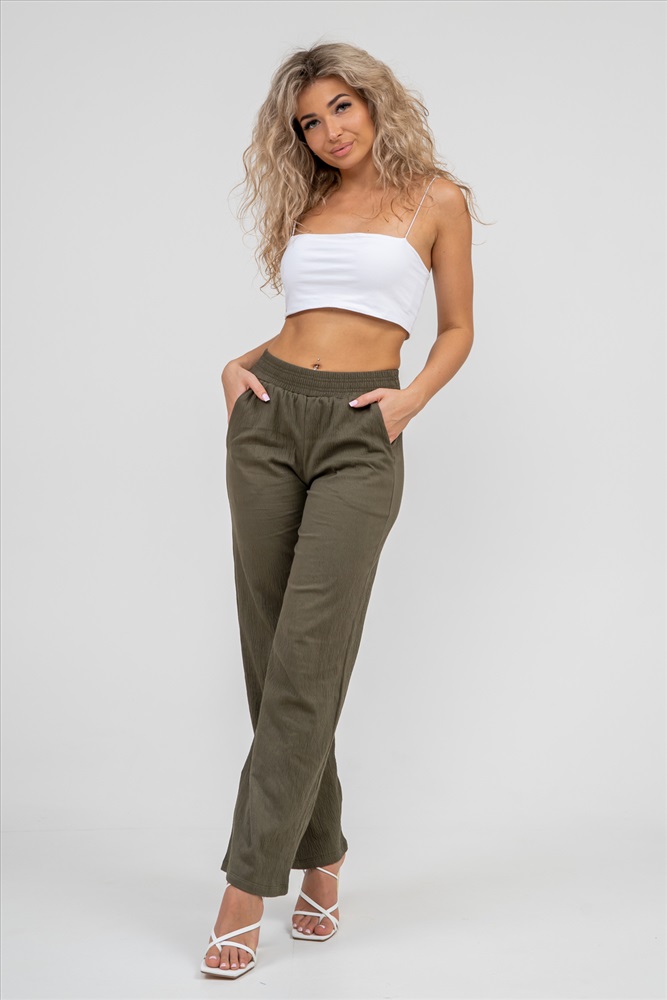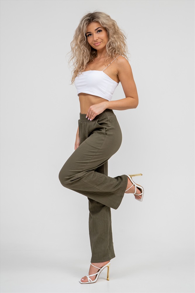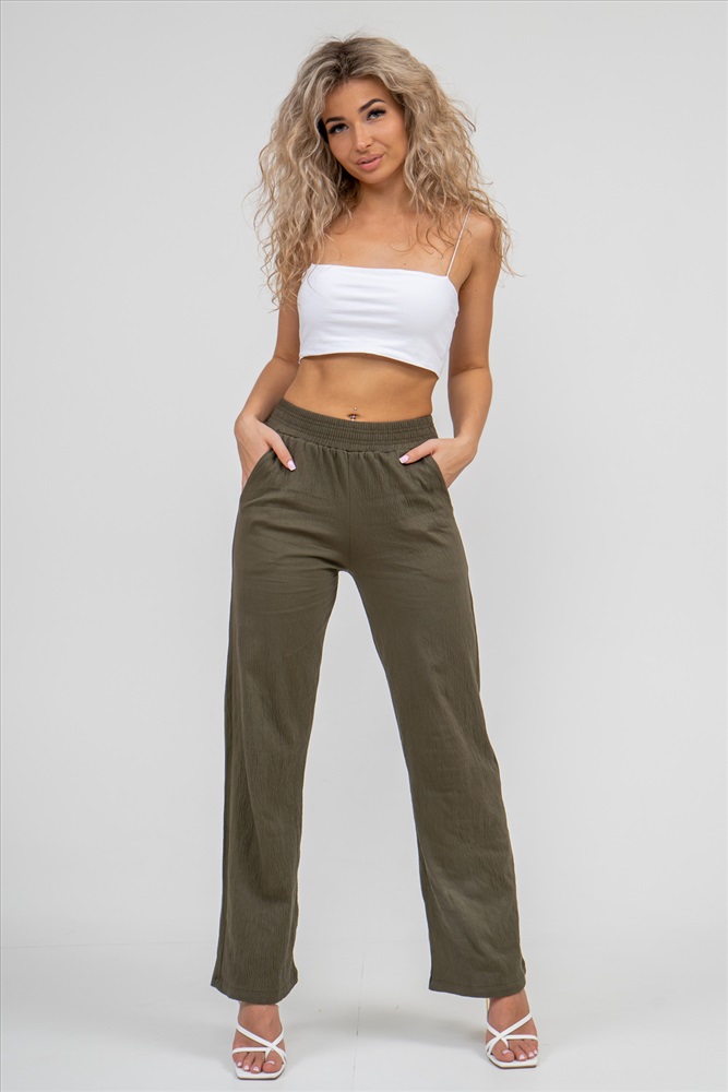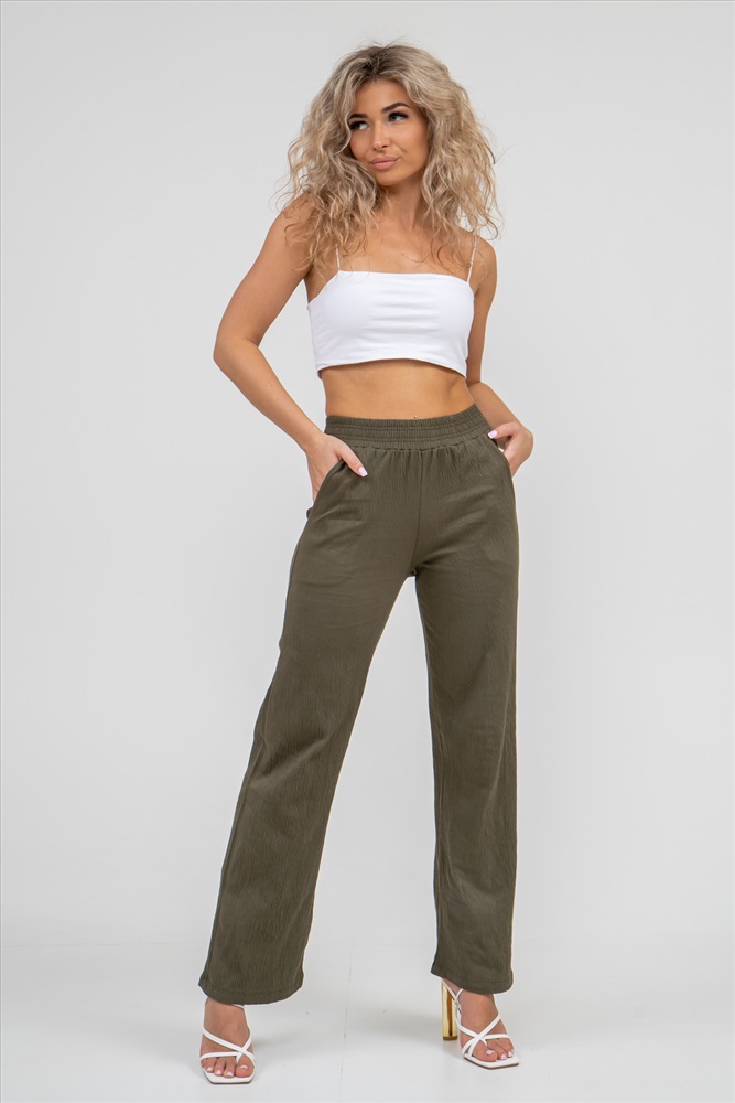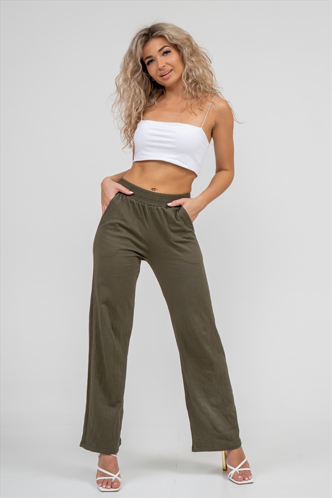 Модные и в то же время универсальные женские брюки выполнены из кулирки гипе жатка компакт. Жатка - это ткань с мятой структурой, декоративными заломами и складками. Модель выполнена с двумя боковыми вместительными карманами и поясом, обработанном на специализированной поясной машине. Брюки прямого кроя на широкой резинке с карманами отлично сядут на любой тип фигуры. Это базовая модель, которая сочетается практически с любой одеждой и обувью. Легкие летние, позволяющие обеспечить правильный воздухообмен между телом, комфортные и не стесняют движения, пояс не сдавливает. Мы не оставили без внимания прекрасных представительниц корпулентных форм, поэтому размерный ряд включает в себя большие размеры. Это брюки, которые будут выгодно смотреться в абсолютно любом образе: как спортивные, классические или домашние, школьные для девочки и для беременных. Довольно практичный экземпляр одежды на каждый день отлично подходит для пляжа, прогулок, офиса и деловых встреч. Сейчас полно другой интересной одежды - карго, парашюты, клёш, пижамные, шорты или кюлоты...но как бы ни менялась мода, брюки - палаццо были, есть и будут самой универсальной вещью женского гардероба. Красивые и эстетичные палаццо - отличный подарок для любимой девушки или жены на день рождения, юбилей, годовщину, 8 Марта или Новый год. Покупайте наши стильные брюки из жатки и создавайте модные образы на каждый день!