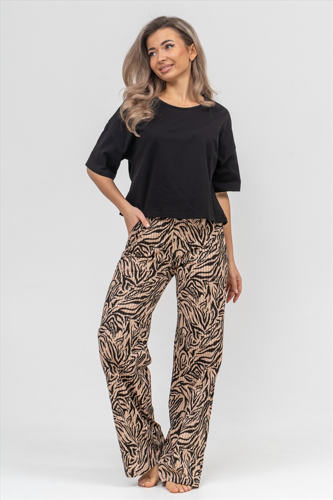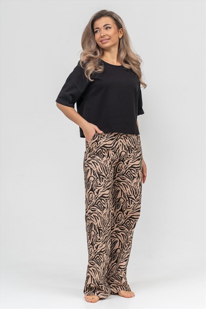 Застежка: без застежки Женские стильные брюки - трубы выполнены из нового трендового 100% хлопчатобумажного полотна. Высокая посадка, вместительные боковые карманы, удобный и качественно обработанный на специальной машине пояс позволит Вам чувствовать себя комфортно. Широкие трубы смотрятся очень элегантно и женственно. Они стали трендом сезона, поскольку подчёркивают стройность и привлекательность ног, а прямой крой скрывает недостатки фигуры. При помощи такой модели можно сделать пропорции тела более сбалансированными. Женские брюки-трубы отличный предмет гардероба для любой представительницы прекрасного пола. В модели такого плана Вы будете чувствовать себя комфортно дома, на отдыхе, на даче и на море. Можете приобрести изделие в качестве подарка на любой праздник: день рождения, 8 марта, 14 февраля и просто так для души. Брюки можно купить с футболкой - костюм 36900.