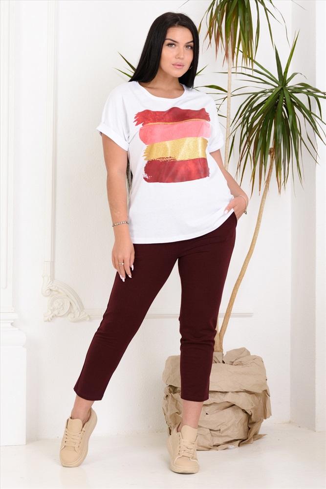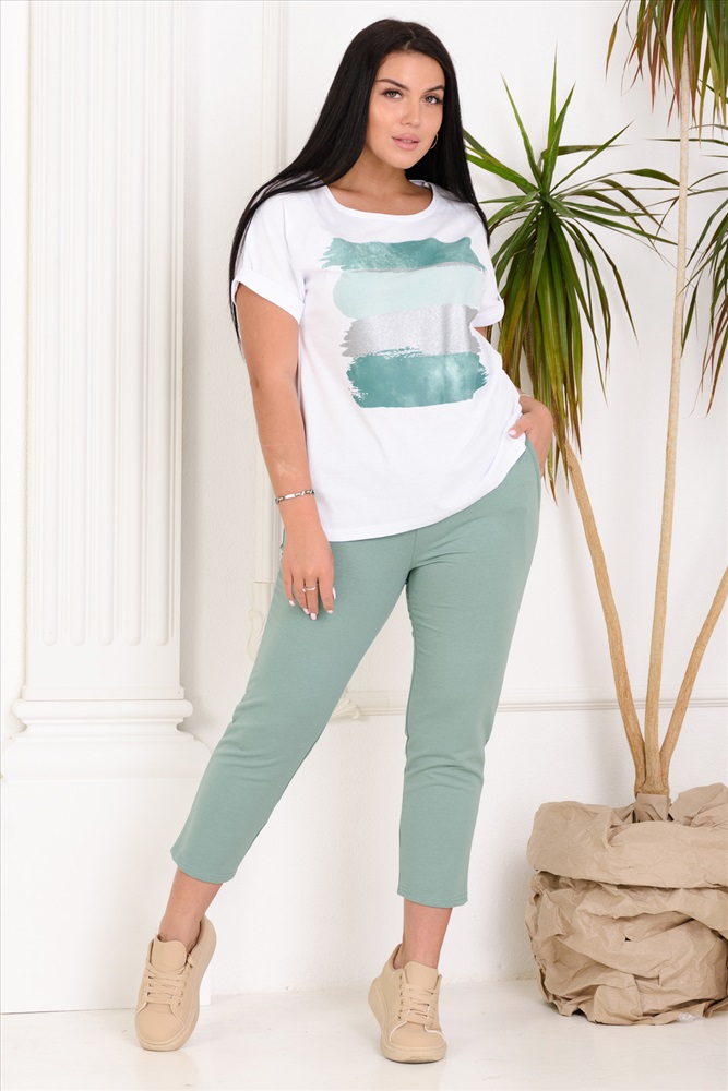 Застежка: без застежки Женские брюки джоггеры с карманами по бокам - вариант на каждый день. Идеальная посадка с высокой талией. Брючки комфортны, не ограничивают движений. Футболка 4436 завершает образ, создавая единый комплект. Прекрасный образ на прохладный вечер или повседневный лук.