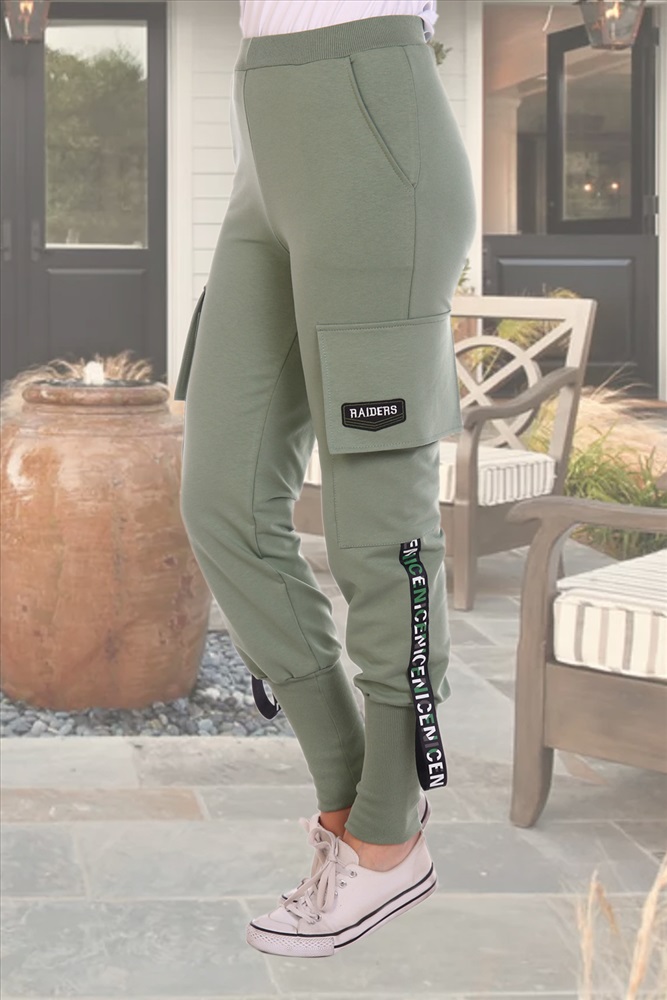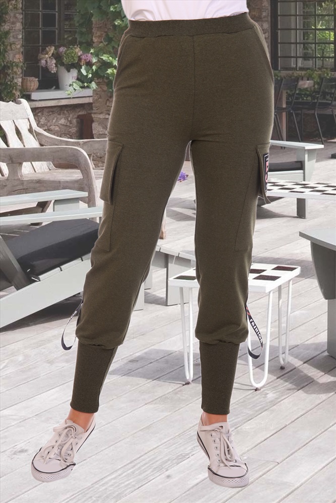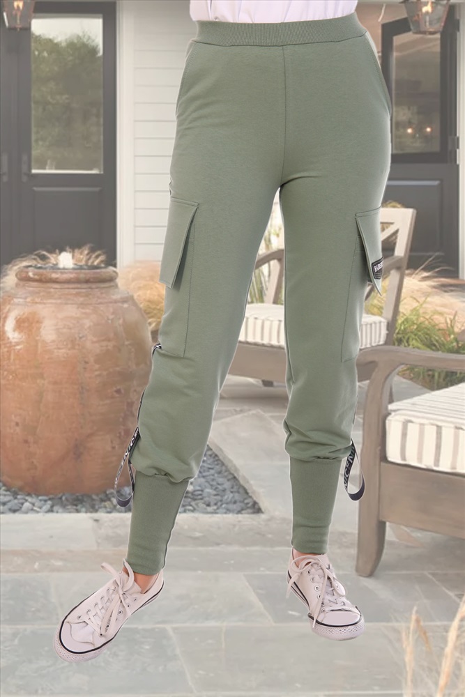 Застежка: без застежки Спортивные брюки, полуприлегающего силуэта на эластичном поясе,низ брюк на широких притачных манжетах. по боковым швам расположенны накладные карманы и декоративная лента.