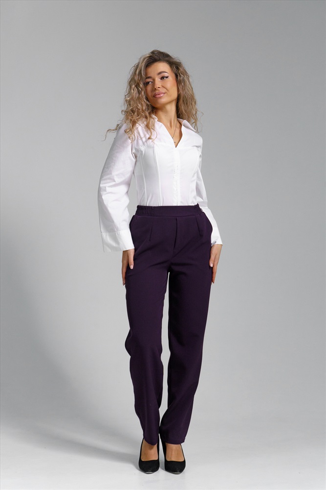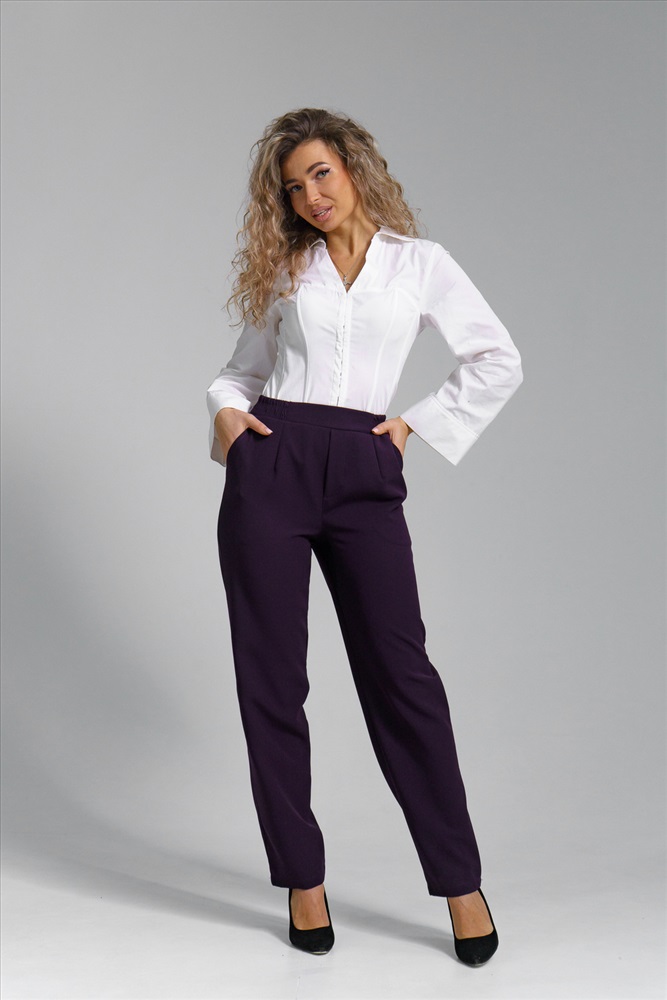 Застежка: без застежки Женские классические брюки на резинке подчеркнут женственность и элегантность фигуры и станут незаменимым элементом базового гардероба. Брюки прямые выполнены из качественной, плотной, приятной на ощупь костюмной ткани, которая не деформируется после стирки, не вытягивается и не скатывается при активном образе жизни. Брюки с высокой посадкой и эластичной резинкой на поясе обеспечат Вам идеальный силуэт, подчеркнут все достоинства фигуры и создадут максимальный комфорт в движении. Пояс выполнен на специализированной поясной машине. На карманах стоят усиленные закрепки. Прямые брюки красиво оформлены и за счет удачного фасона невероятно стройнят. Женские брюки с карманами представлены до большого размера - плюс сайз, plus size. Благодаря своему крою и выверенному лекалу подойдут как стройным, так и полным женщинам, беременным девушкам или молодым мамам. Брюки бананы идеальны для создания строгих офисных луков и стильных повседневных, для школы и работы, а также праздничных вечерних образов. Данная модель выгодно подчеркнет Ваши достоинства и в домашней обстановке, удивите своих близких стильными домашними образами. Однотонные цвета этих брюк гармонично сочетаются с любым верхом. Благодаря качественному материалу и модным цветам этого сезона, они будут радовать Вас всегда и создавать безупречный образ в любое время года. Проявите свой стиль и модный вкус, выбрав наш товар.