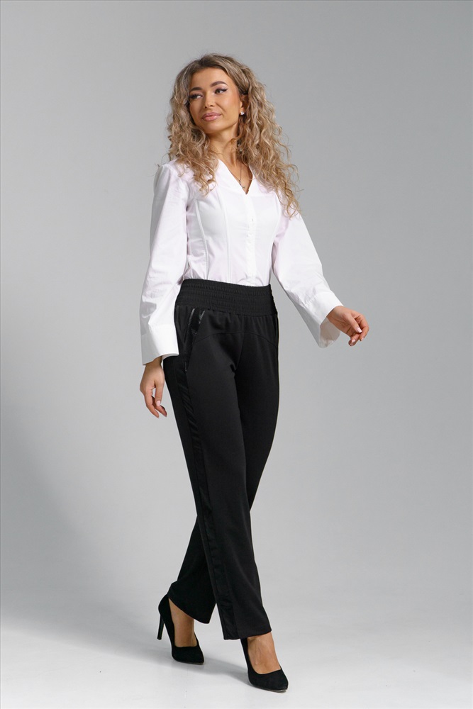 Состав: 76% п/э, 16% вискоза, 8% эластан Модель: Брюки 53013 Тип товара: брюки Материал: нейлон рома | нейлон рома Бренд: Натали Суслова Карман: боковые НДС: 22% Особенности: на резинке Отделка: с карманами | с лампасами Посадка: высокая посадка Рисунок: однотонные Сезонность: лето | осень | весна | зима Стиль: офисный | повседневный Застежка: без застежки Женские стильные прямые брюки выполнены из двух видов материала: качественная эко-кожа и воздухопроницаемый плотный стрейч - трикотаж нейлон - рома. Два этих дополняющих друг друга материала создают комфорт, удобство и поддерживают температуру тела постоянной вне зависимости от условий внешней среды. Качественный материал не теряет свойств при интенсивной эксплуатации. Хорошо сохраняет первоначальную форму и презентабельный внешний вид. Неприхотливый, элементарно стирается, быстро сохнет, не нуждается в глажке. Модель такого плана поможет Вам создать сногсшибательный образ. Изделие выполнено на широком поясе - резинке с завышенной линией талии, что делает Вашу фигуру стройной и подтянутой. По бокам изделия имеется вставка и карман-обманка из экокожи, актуальной в этом и следующем сезоне. Брюки такого плана станут прекрасной основой любого образа, как на каждый день, так и на праздник. А размерная сетка не оставит без внимания прекрасных представительниц корпулентных форм, поэтому размерный ряд включает в себя большие размеры. Классические брюки с резинкой на поясе прекрасно подойдут как для повседневного образа на работу, в офис, так и на любое мероприятие. Брюки больших размеров вытягивают силуэт, делая ноги зрительно стройнее и длиннее, при этом надежно скрывая любые несовершенства. Легкие и комфортные, представлены стандартных и больших размеров плюс сайз plus size. Брюки с зауженными к низу штанинами позволяют создавать модные образы, а завышенная линия талии обеспечивает комфортную посадку. Универсальные, идеально садятся, не сползают и правильно ведут себя при движении. Из-за особенностей кроя визуально вытягивают силуэт и делают его тонким и изящным. Отличный вариант создать стильный образ для прогулок. Очень комфортные в повседневной носке в любой сезон. Если вы ищете брюки на каждый день, то эта удобная и практичная модель для Вас! Таблица размеров и веса