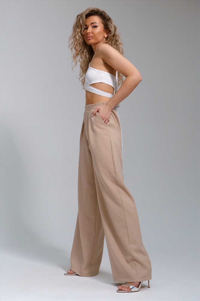 Состав: 50% лён, 50% п/э Модель: Брюки 53024 Тип товара: брюки Материал: лен | лен Бренд: Натали Суслова Карман: боковые Особенности: на резинке Отделка: с карманами | со складками Посадка: высокая посадка Рисунок: однотонные Сезонность: лето | осень | весна | зима Силуэт: свободный Стиль: офисный | повседневный Застежка: без застежки Брюки-палаццо мастхэв базового женского гардероба. Модель выполнена из качественной льняной ткани. Материал прочный, приятный на ощупь, хорошо струится и дышит. Изделие представлено в классических модных цветах. Широкий крой со складками и высокой талией создает красивый силуэт и обеспечивает удобную посадку, на любой тип фигуры. Пояс выполнен на специализированной поясной машине, что добавляет изделию качество на долгое время и эстетичность. На брюках имеются боковые карманы с усиленными закрепками на закрепочной машине. На модели представлен 46 размер - фигура соответствует параметрам размера. УХОД ЗА ИЗДЕЛИЕМ: бережная стирка при максимальной температуре 30С, не отбеливать, машинная сушка запрещена, глажение при 110С, профессиональная сухая чистка, стирать вывернутым наизнанку, глажение с использованием специальной сетки, стирать с изделиями похожих цветов . Брюки такого плана идеально впишутся в городской стиль, элегантность и комфорт, женственные силуэты и мягкие линии, расслабленные, нарочито небрежные образы, стильные и комфортные. Широкие брюки со складками модная одежда для женщин на любой случай жизни. Подойдут для стильных повседневных луков, офисных аутфитов, нарядных вечерних образов и прогулок. Таблица размеров и веса