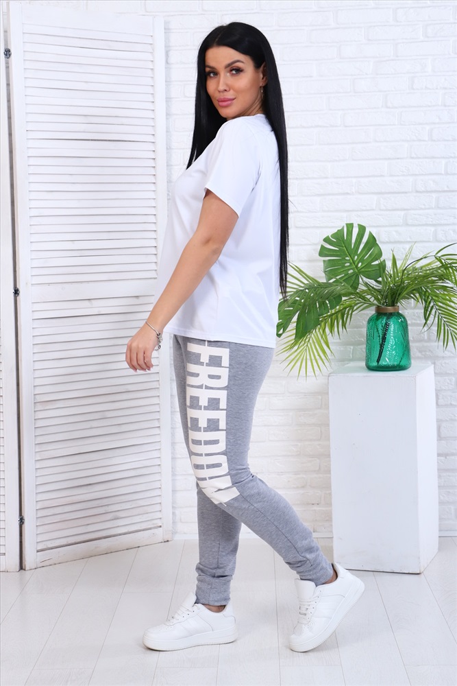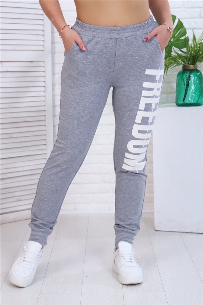 Застежка: без застежки Брюки женские с двумя карманами, оригинальный принт на левой части брюк. Комфортная посадка на любом типе фигуры.